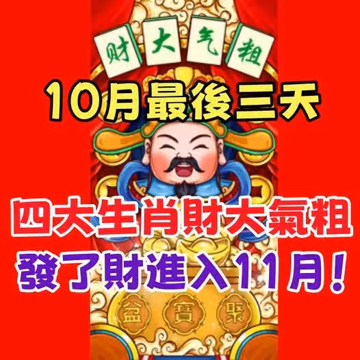 10月最後三天,四大生肖財大氣粗,發了財進入11月!