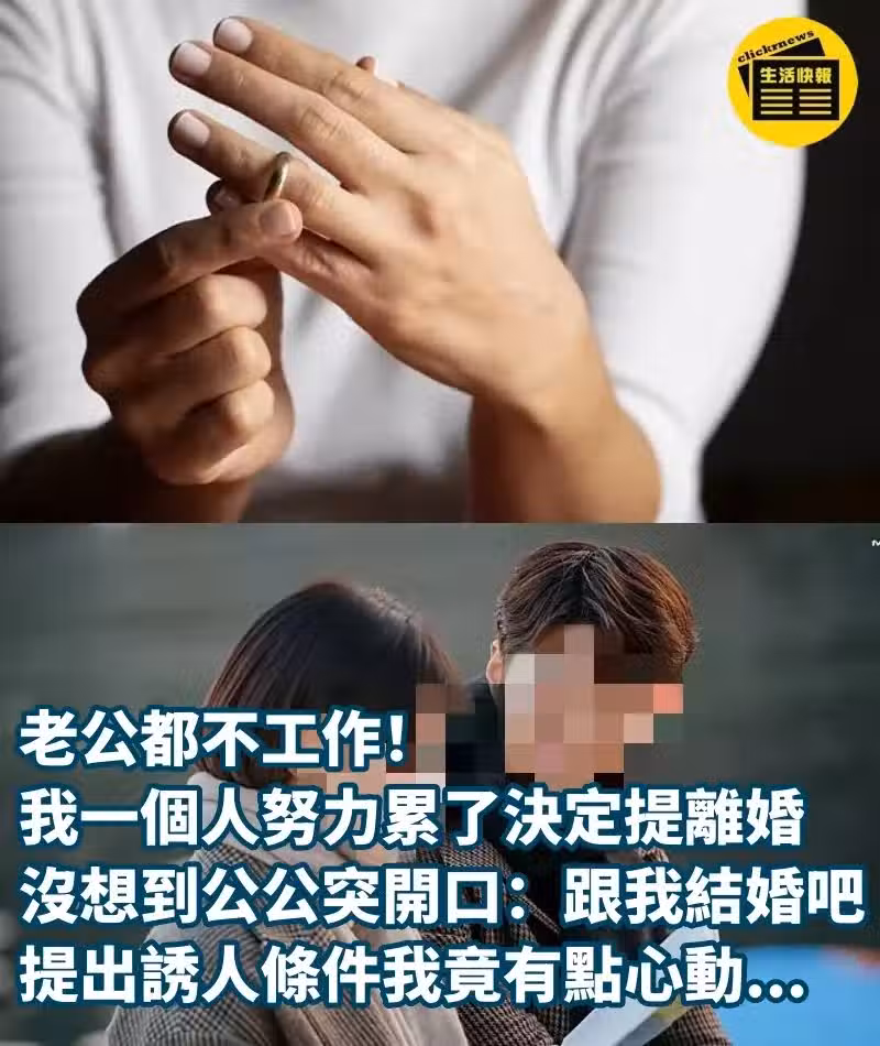 結了婚以後雙方要共同為這個家庭努力,倘若只有一方默默付出,久了也會身心俱疲,近日一名女網友透露,因為老公長期不工作,自己即將要離婚,沒想到公公卻對她拋出橄欖枝,讓她傻眼不已。