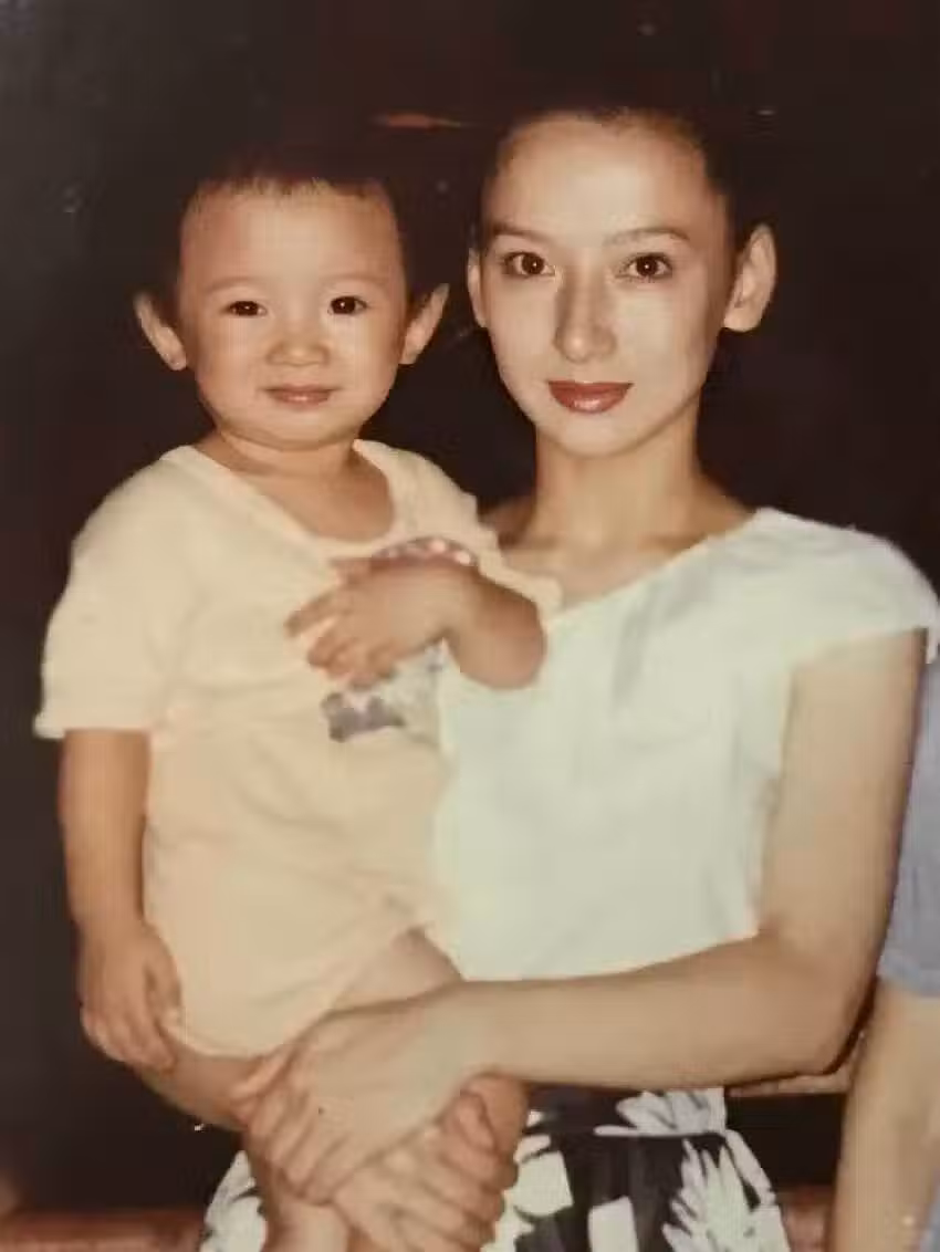 照片中,年輕時的她抱著一個小孩,面帶微笑,眼神中透露出母愛的溫柔,讓人感到溫馨。