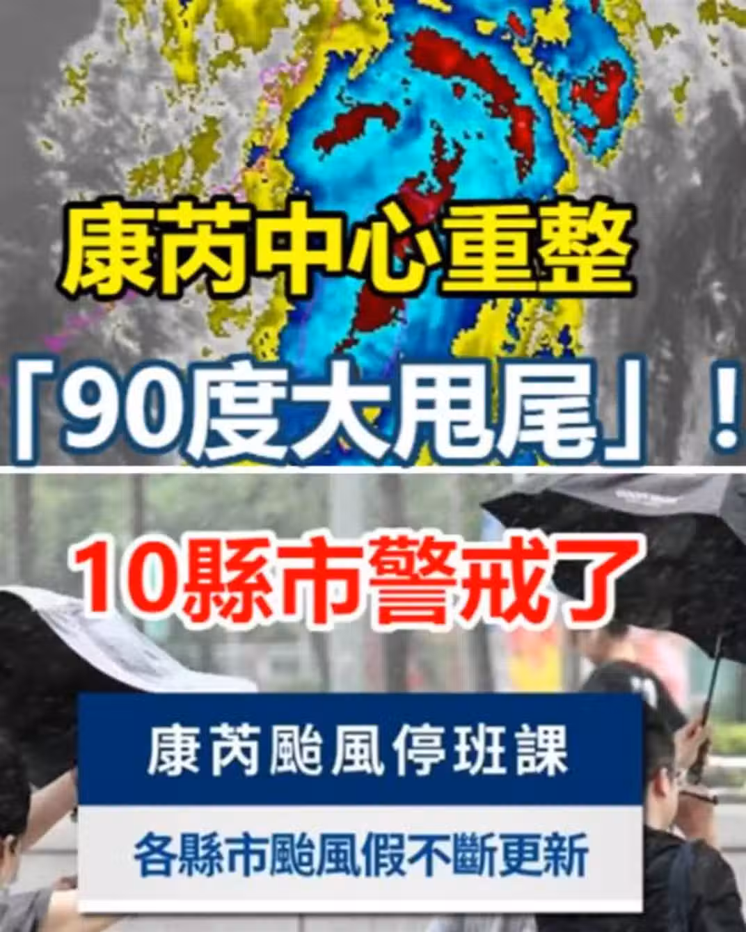 天氣/康芮中心重整「90度大甩尾」!10縣市警戒,停班停課一次看
