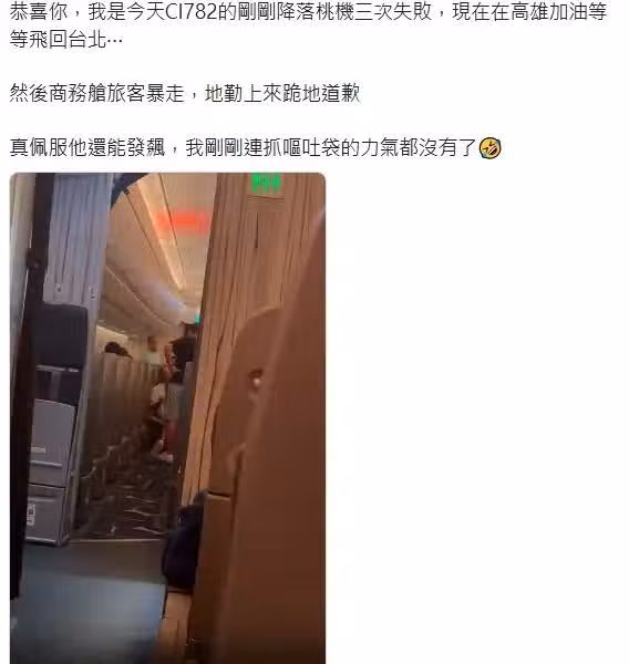 3度降落失敗!「華航地勤跪地道歉」旅客還原現場:商務艙乘客暴怒發飆