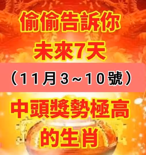 偷偷告訴你:未來七天(11月3 到 10號)中頭獎勢極高的生肖