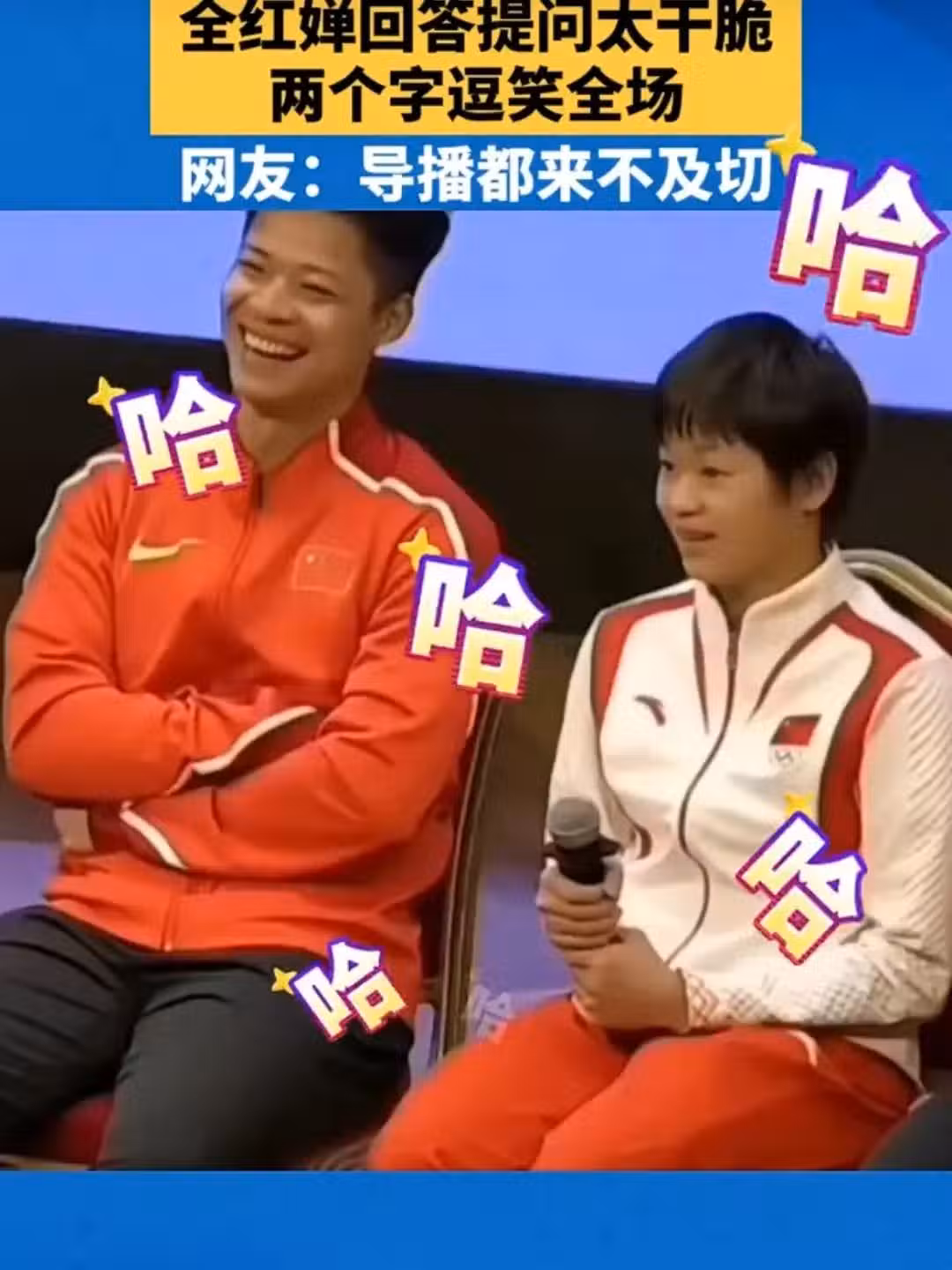 還沒等導演切鏡頭,畫面背後幾乎同步傳來全紅嬋鏗鏘有力且簡潔的兩個字: