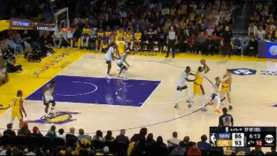 里夫斯帶走迪溫琴佐為濃眉的突破拉開空間。蘭德爾完成沒有失位並且最終還進行了非常好的投籃干擾。