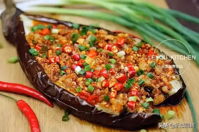 第一步:準備食材。長茄子1根、肉末60克、紅辣椒適量、蒜適量、香蔥適量。