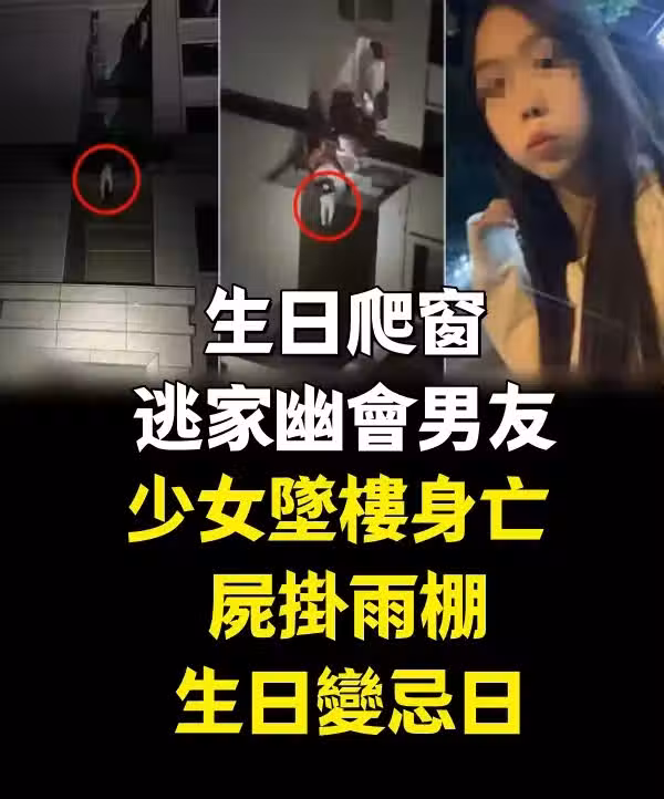 生日爬窗逃家幽.會男友,少女墜.樓身.亡 ,屍掛雨棚,,生日變忌日