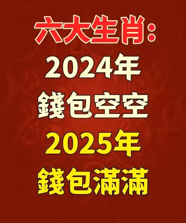 六大生肖:2024年錢包空空,2025年錢包滿滿!