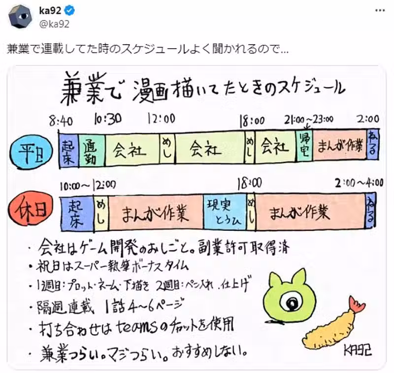 日本漫畫家「ka92」最近在X發文,聊起了當個兼職漫畫家該如何分配時間,隨即引髮網友們的熱烈反響!