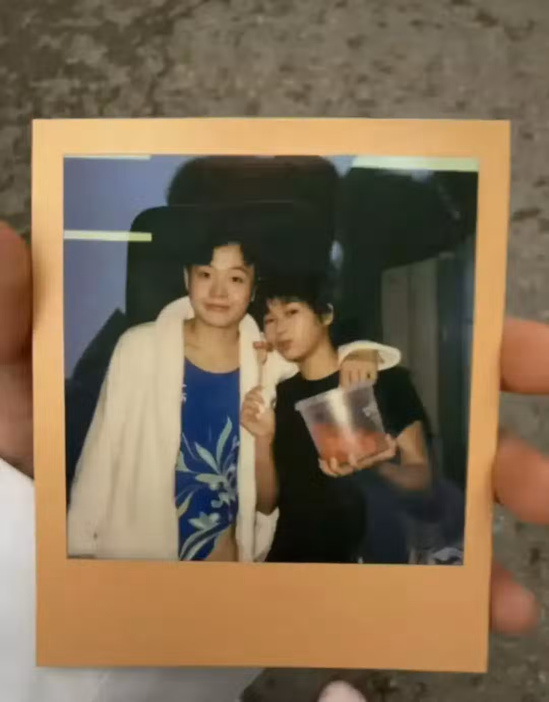 有一張照片,是把兩杯果茶放在嘴裡喝的照片,全紅嬋拿著兩杯果茶對著鏡頭自拍,兩個果茶一起喝,又是一種新的口味。