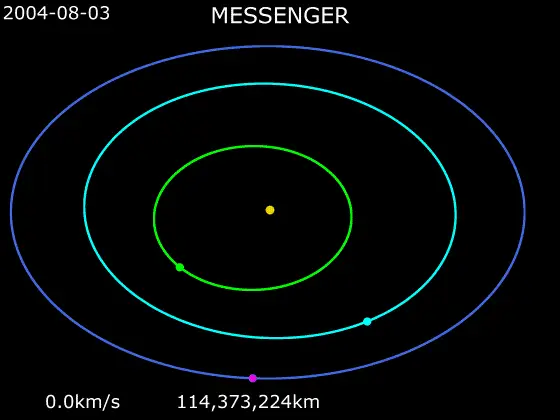 「信使號」於2004年8月3日發射升空,在此之後,它沿著一個複雜的軌道「小心翼翼」地向水星接近(如上圖所示),期間多次借用了地球和水星的「引力彈弓」為自己減速以及修正方向,最終於2011年03月18日成功進入圍繞水星的軌道,整個過程耗時6年多,飛了大約79億公里(約52.81個天文單位)。返回搜狐,查看更多