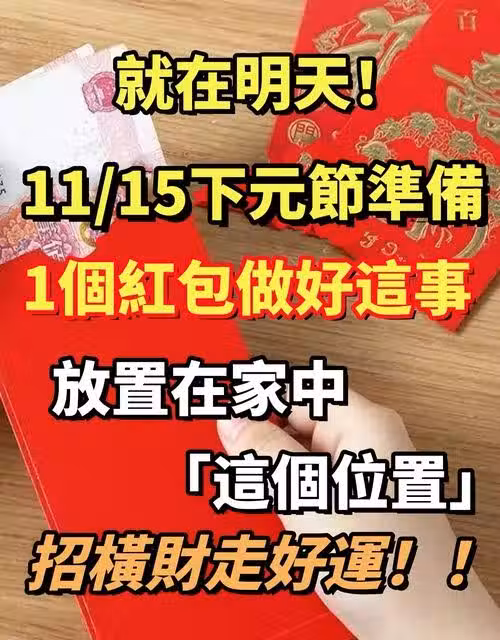就在明天! 11/15下元節,準備「1個紅包做好這事」,放置在家中這個位置,招橫財走好運!