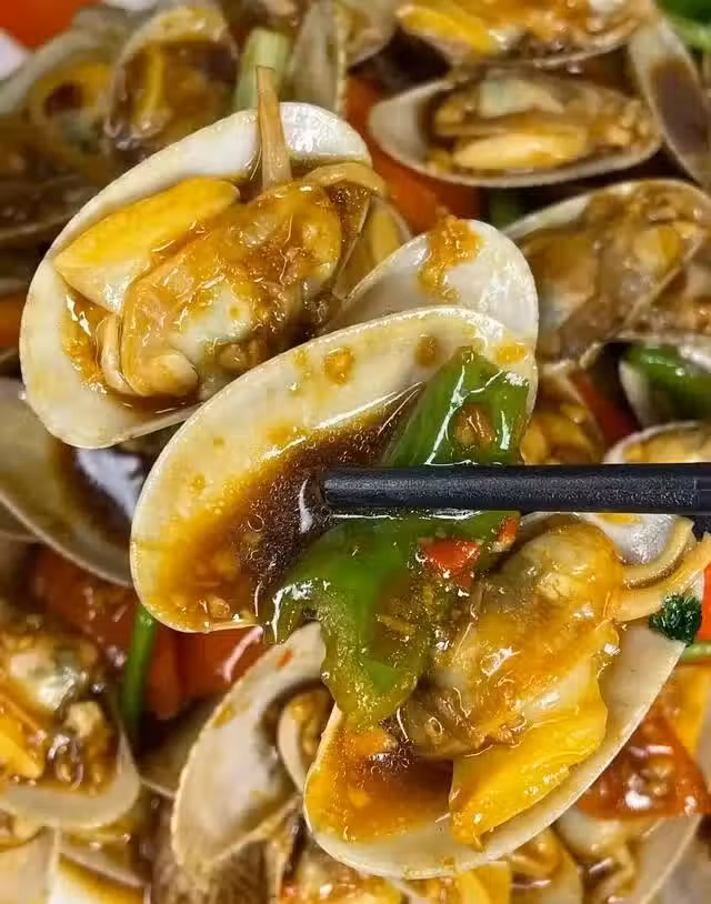 做法:花甲冷水下鍋,加入姜、蔥、料酒焯水,熱鍋冷油爆香蒜蓉~