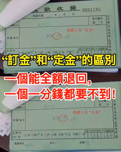 「訂金」和「定金」的區別,一個能全額退回,一個一分錢都要不到!