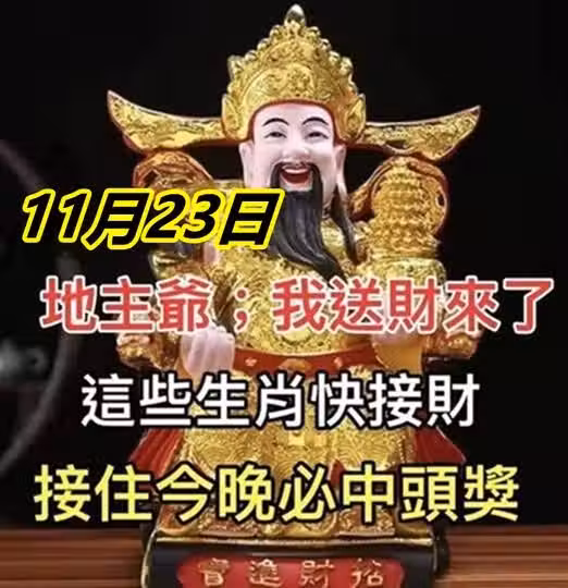 今天11月23日,地主爺說:我送橫財來了!這些生肖,今晚必中頭獎!