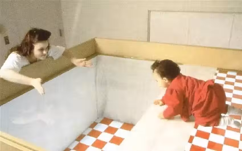 媽媽會在「懸崖」一端呼喚寶寶,看孩子會不會爬過透明玻璃,越過「懸崖」。