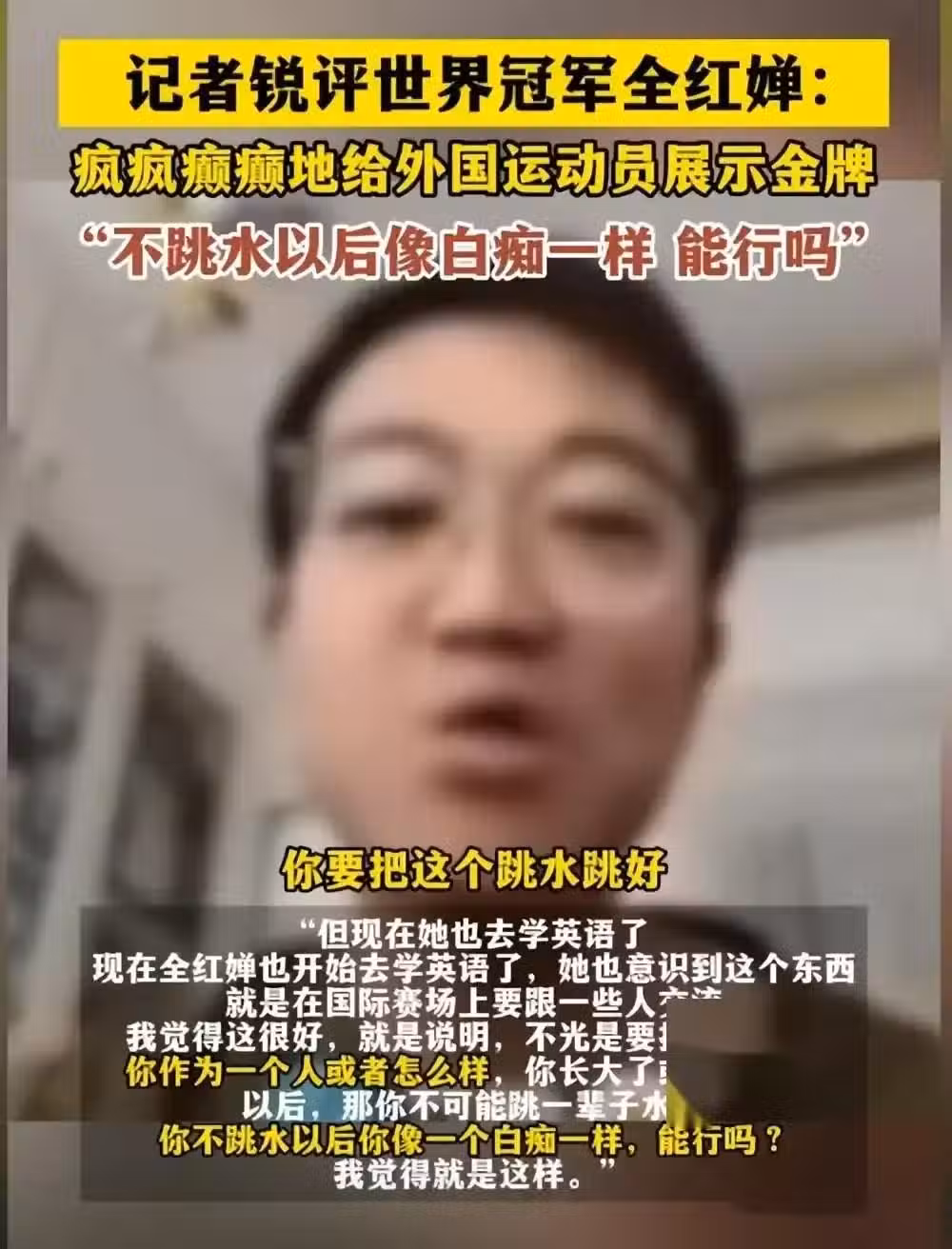 這樣的言論,不僅不負責任,更是不專業的表現。作為一名記者,朱小龍理應具備基本的職業素養和道德水準,但他的言論,不僅讓人質疑他的專業水平,更讓人懷疑他是否真的了解跳水運動。