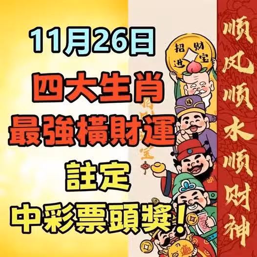 11月26日,四大生肖最強橫財運,註定中彩票頭獎!