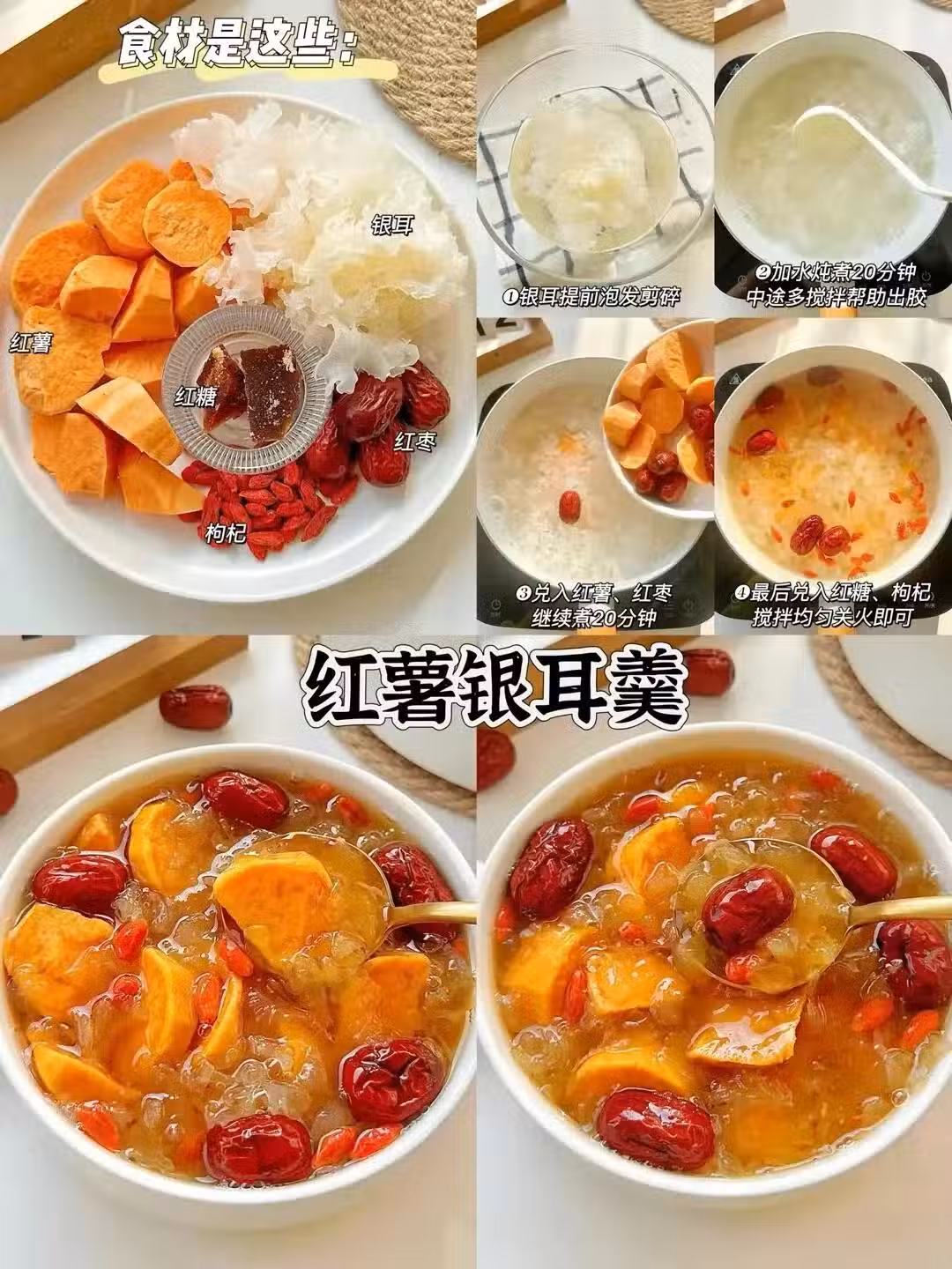 食材:紅薯,紅糖,銀耳,紅棗,枸杞