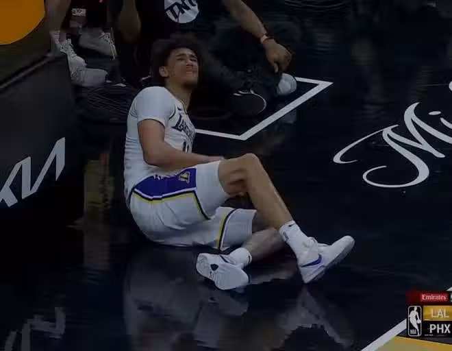 扣個籃把自己扣傷了!湖人神塔最後1分鐘重傷,詹皇氣得眉頭緊鎖