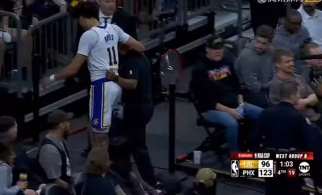 扣個籃把自己扣傷了!湖人神塔最後1分鐘重傷,詹皇氣得眉頭緊鎖