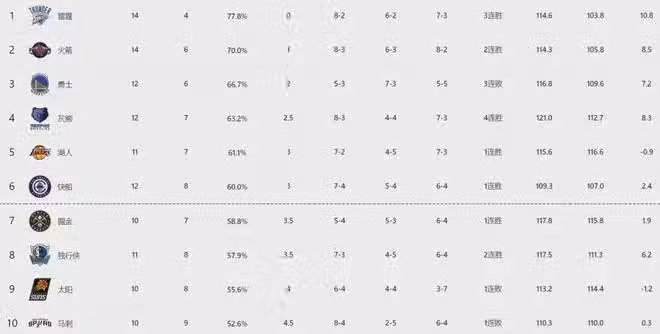 火箭顯然是最讓人驚喜的球隊,正在加足馬力升空,目前14勝6負高居西部第二,上賽季同期則是11勝9負,進步相當之大。