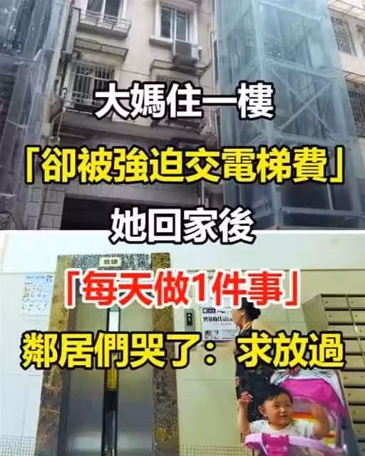 大媽住一樓「被強迫交電梯費」 回家後「每天做1件事」鄰居們哭了:求放過!