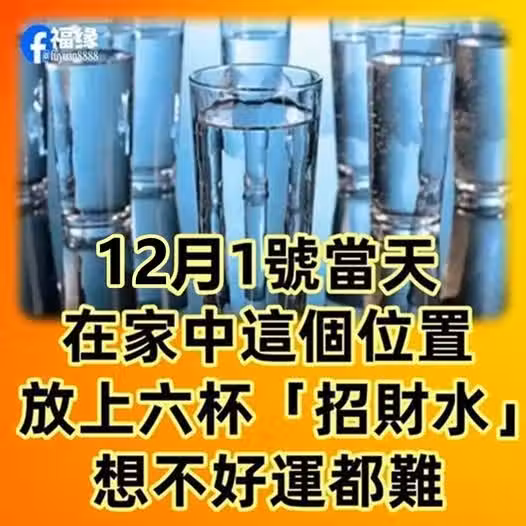 12月1號當天,在家中這個位置,放上六杯「招財水」想不好運都難!