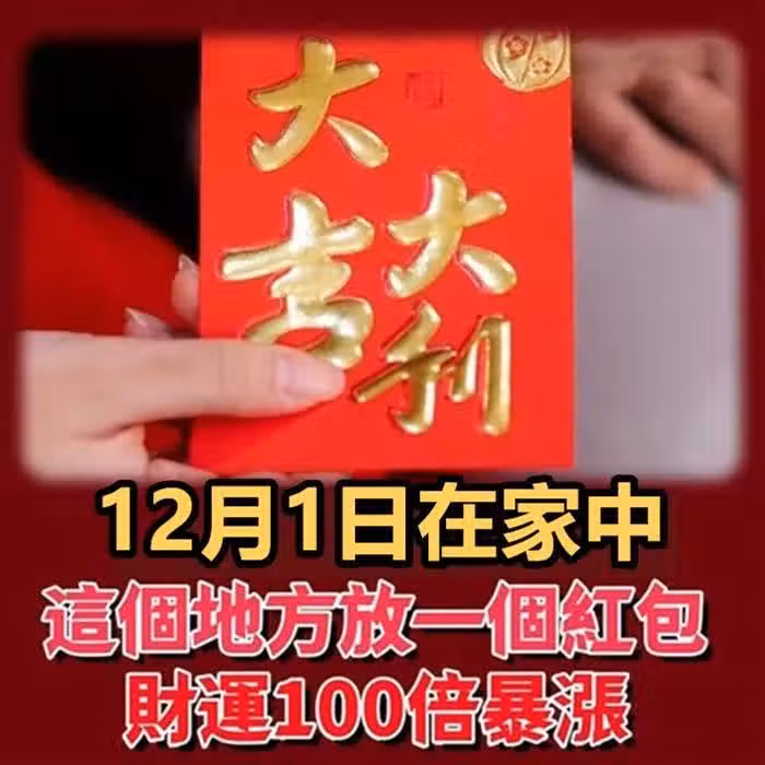 風水師偷偷透露:12月1日在家中這個地方,放一個紅包,竟能讓財運100倍暴漲,好運一路旺到年底!