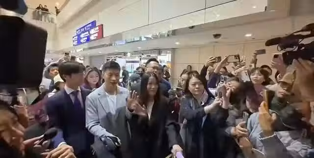 機場檢票口一出,台灣的粉絲們便圍滿了機場候車區,熱情歡迎大家的到來。由安保人員引導,媒體記者們將大陸師生圍得水泄不通。引導員滿足了大家的要求,讓馬龍和楊倩站在了最前面。