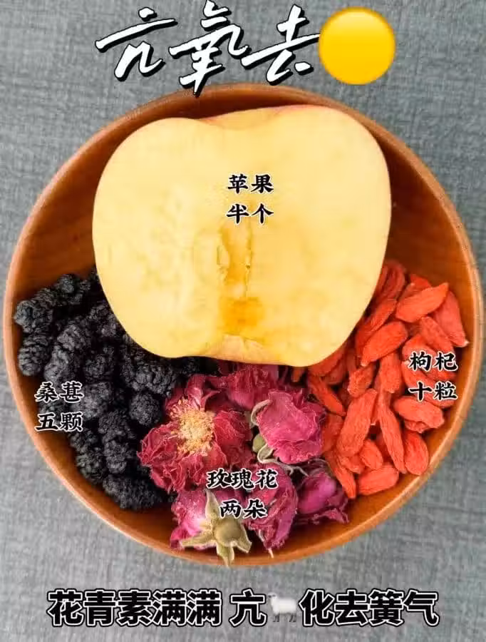 9.蘋果+桑葚+紅枸杞+玫瑰(抗氧去黃)