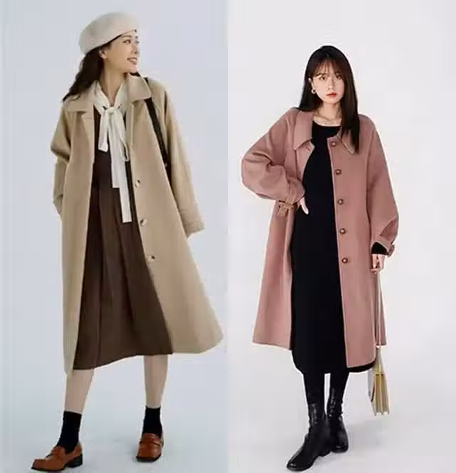 3:長大衣材質較厚重寬鬆,連衣裙則輕薄修身