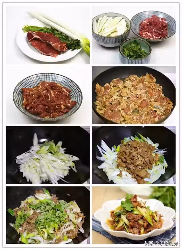第五步:鍋中再倒入少許油,油熱後把大蔥放入鍋中,大火煸炒出香味。