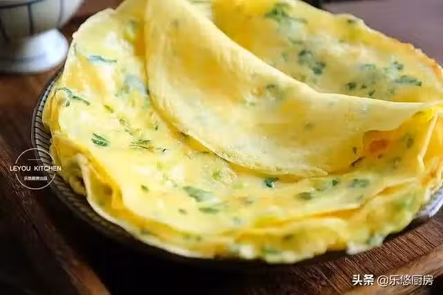 這樣烙好的餅,軟軟的,咬一口有著淡淡的小油菜香氣,還有著雞蛋香,吃著特別美味。製作也很簡單,不需要動手和面,攪一攪麵糊就可以上鍋烙,超貼心。