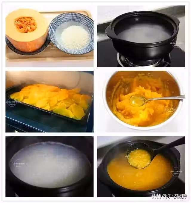 1、把南瓜蒸一下輾成泥再與粥一起煮,南瓜與粥會融合得更好,煮好的粥顏色也更漂亮。