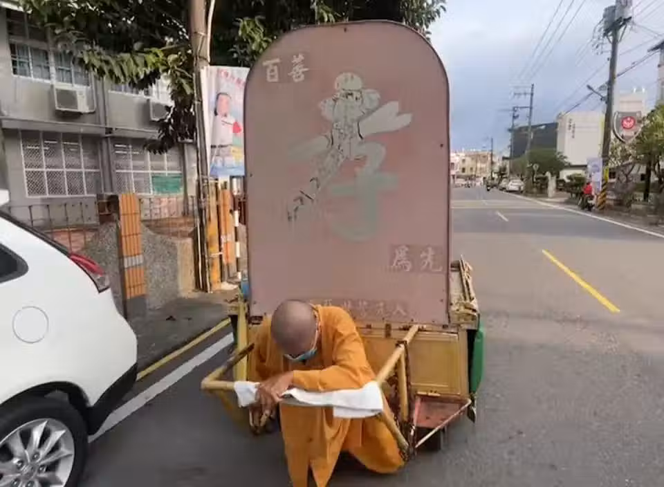 為亡父盡孝!屏東驚見苦行僧「拉棺材車跪行萬里」 希望警戒世人「懺悔23年準備休息」