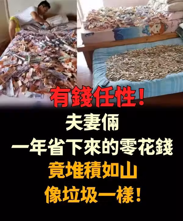 有錢任性,夫妻倆一年省下來的零花錢竟「堆積如山」,像垃圾一樣