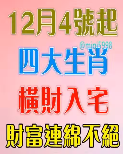 12月4號 四生肖 橫財入宅