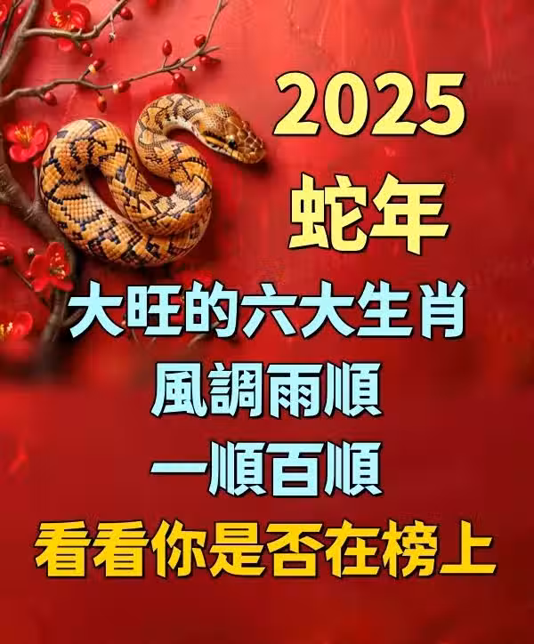 2025蛇年大旺的六大生肖,風調雨順,一順百順,看看你是否在榜上!