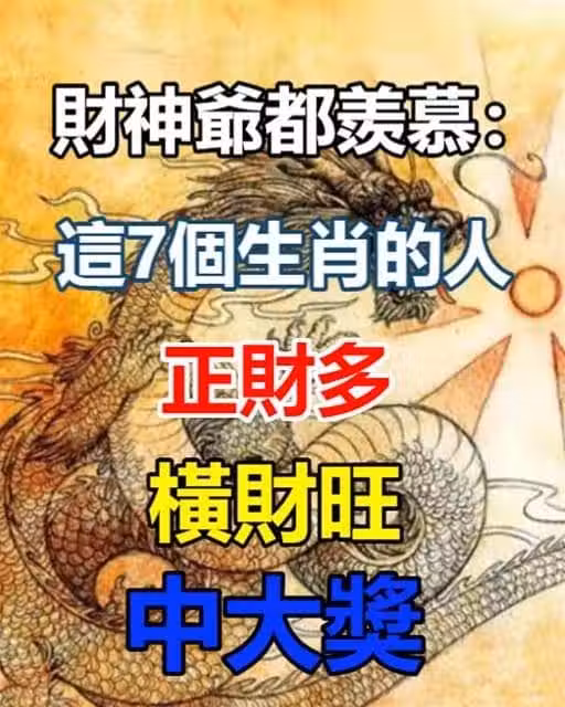 財神爺都羨慕:這7大生肖的人,正財多,橫財旺,中大獎