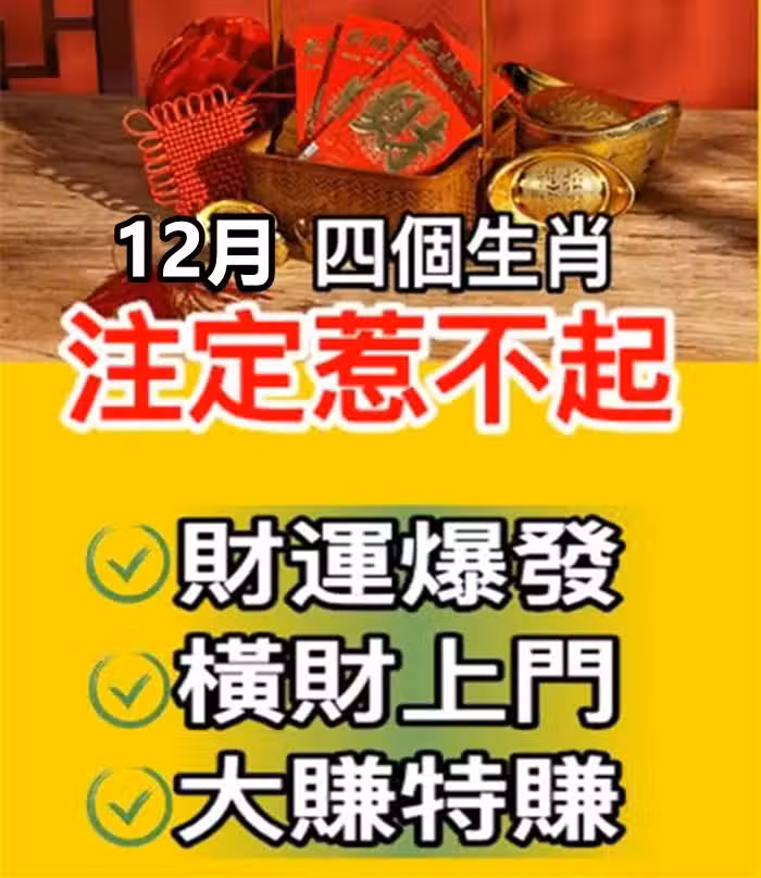 12月:四個生肖註定惹不起!財運爆發,橫財上門,大賺特賺!