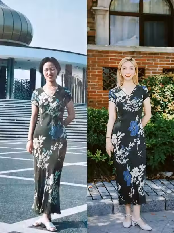 網友穿20年前媽媽的衣服,發現:時尚確實退步了,難怪爸爸嫌我土