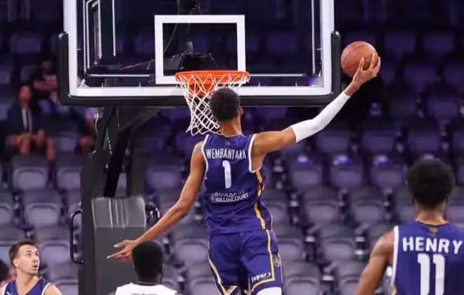 早在進入NBA之前,文班亞馬就已經鎖定了狀元席位。他身高達到2米24,臂展超過2米4,硬體出色的同時,運動能力也很強大。看看上面這張圖,他還在法國聯賽效力時,只是個18歲的孩子,但他已經可以完成平框暴扣了。一般來說,2米2的巨人速度和彈跳都不好,但文班亞馬卻可以是類似杜蘭特的球員,天賦肉眼可見。