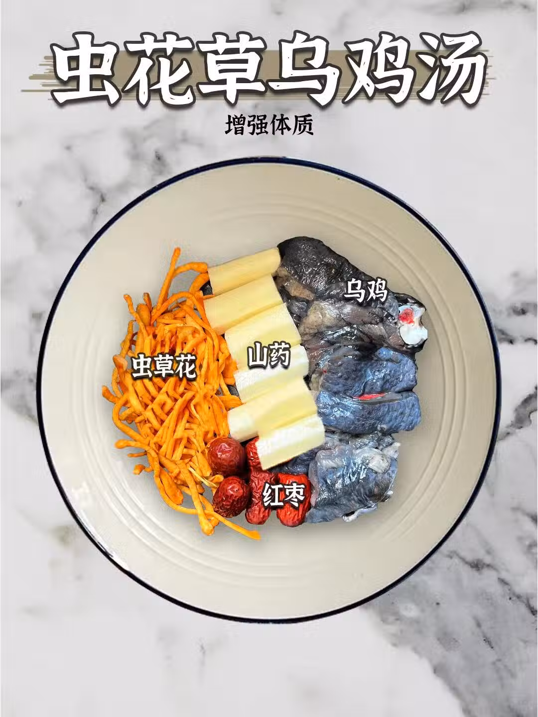 食材:烏雞 山藥 蟲草花 紅棗