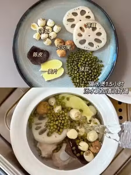 、蓮藕、綠豆、蓮子、陳皮、無花果、生薑