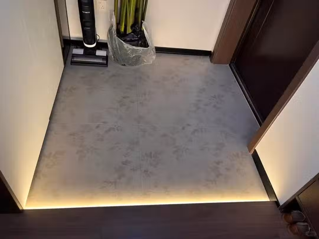 而且現在的下沉式玄關越涉及越高級,還在下沉的部位貼上燈帶,感應式的燈帶,每當你回到家打開門,燈帶就會感應亮起,回家儀式感滿滿。
