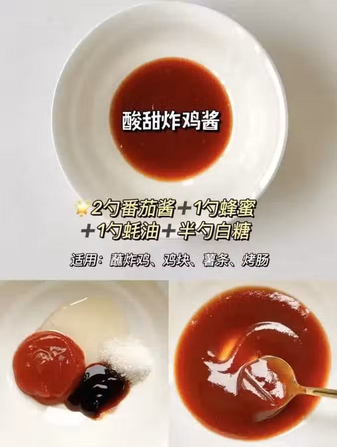 2勺番茄醬+1勺蜂蜜+1勺蚝油+半勺白糖
