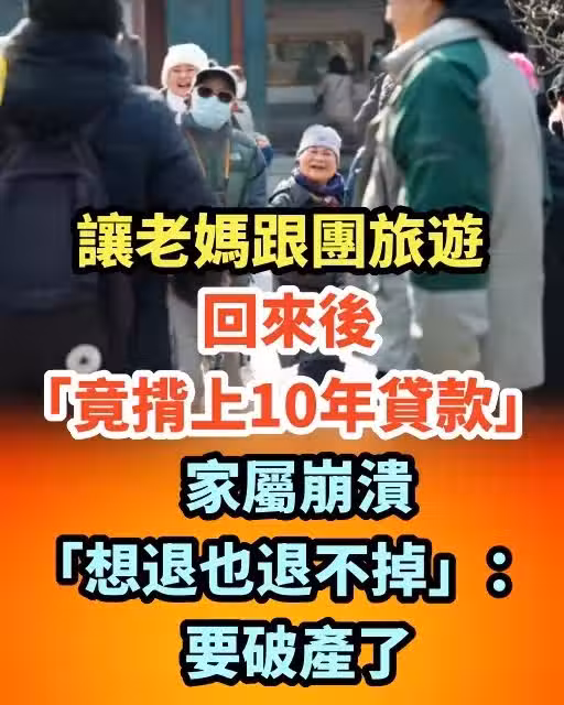 讓老媽跟團旅遊!回來後「竟背上10年貸款」 家屬崩潰「想退也退不掉」:要破產了