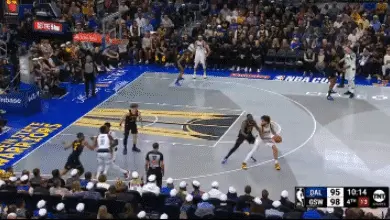 接到萊夫利傳球後歐文並未獲得好的出手機會,好在通過不斷運球調整節奏後完成後撤步三分終結。