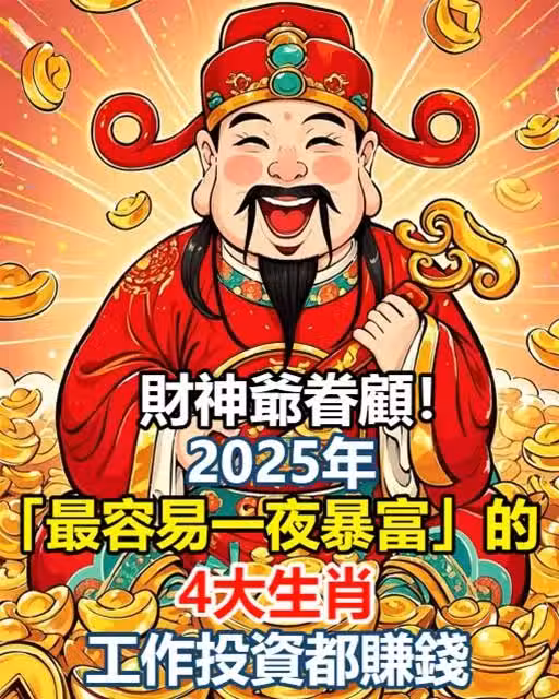 財神爺眷顧!2025年「最容易一夜暴富」的4大生肖:工作投資都賺錢