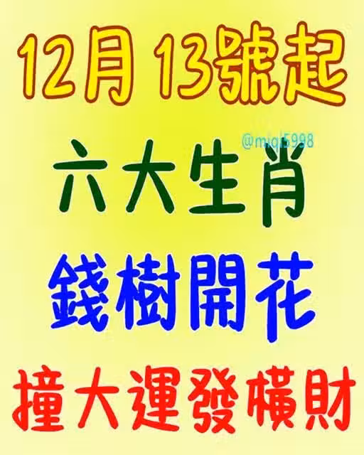 12月13號 六生肖 撞大運發橫財